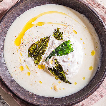 Spargel Creme Suppe mit Bärlauch Chips